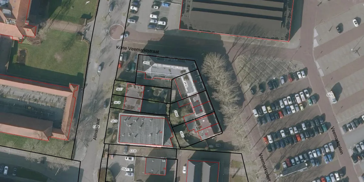 Korte Veemarktstraat 5-6 is gelegen op kadastraal perceel SNE00A3432. Deze kadastrale aanduiding is uniek en wordt gebruikt door het Kadaster om eigendomsrechten en andere zakelijke rechten vast te leggen. Het perceel maakt onderdeel uit van de kadastrale gemeente Sneek.