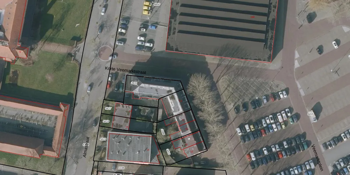 Korte Veemarktstraat 5-18 is gelegen op kadastraal perceel SNE00A3431. Deze kadastrale aanduiding is uniek en wordt gebruikt door het Kadaster om eigendomsrechten en andere zakelijke rechten vast te leggen. Het perceel maakt onderdeel uit van de kadastrale gemeente Sneek.