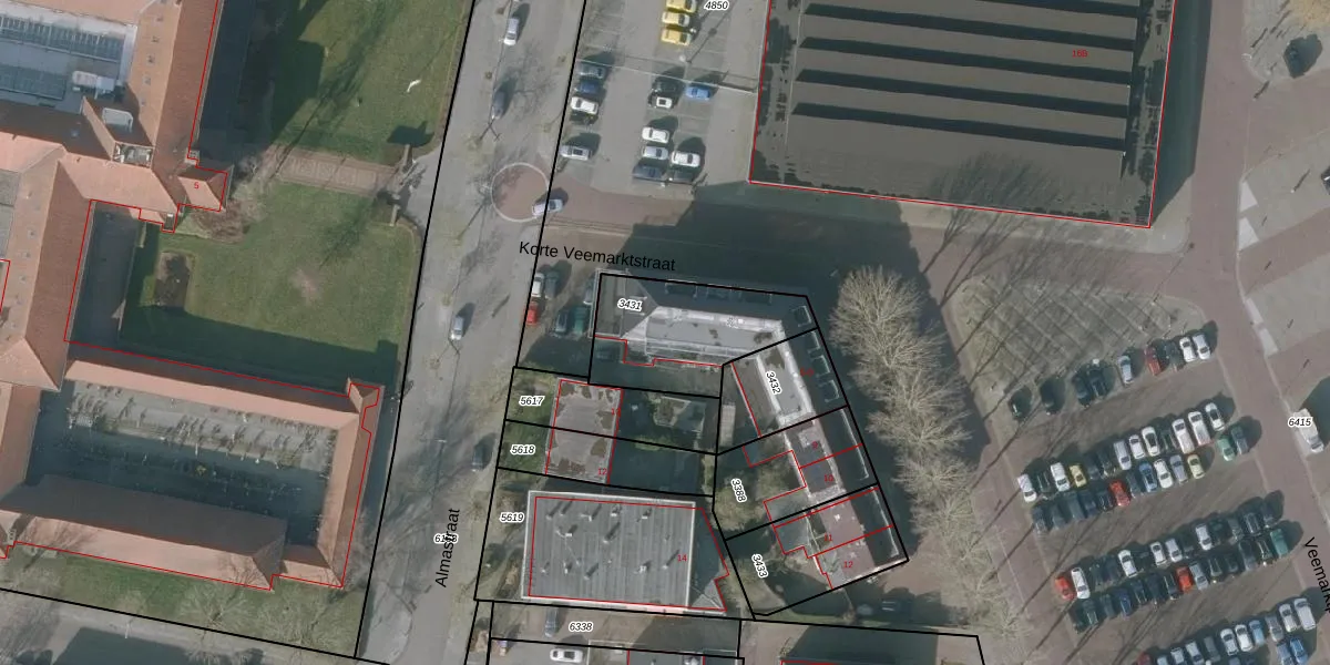 Korte Veemarktstraat 5-21 is gelegen op kadastraal perceel SNE00A3431. Deze kadastrale aanduiding is uniek en wordt gebruikt door het Kadaster om eigendomsrechten en andere zakelijke rechten vast te leggen. Het perceel maakt onderdeel uit van de kadastrale gemeente Sneek.