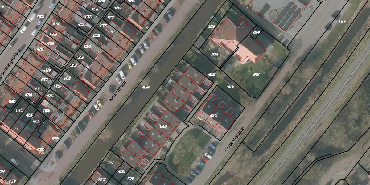 Korte Vreugde 14 is gelegen op kadastraal perceel SNE00A5650. Deze kadastrale aanduiding is uniek en wordt gebruikt door het Kadaster om eigendomsrechten en andere zakelijke rechten vast te leggen. Het perceel maakt onderdeel uit van de kadastrale gemeente Sneek.
