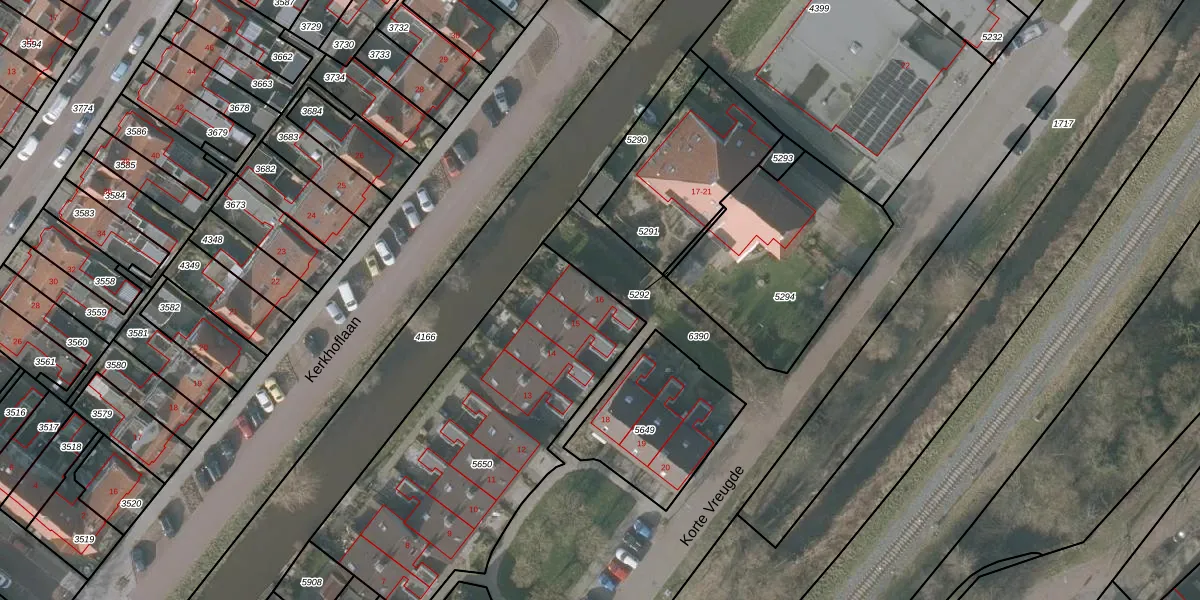 Korte Vreugde 16 is gelegen op kadastraal perceel SNE00A5650. Deze kadastrale aanduiding is uniek en wordt gebruikt door het Kadaster om eigendomsrechten en andere zakelijke rechten vast te leggen. Het perceel maakt onderdeel uit van de kadastrale gemeente Sneek.