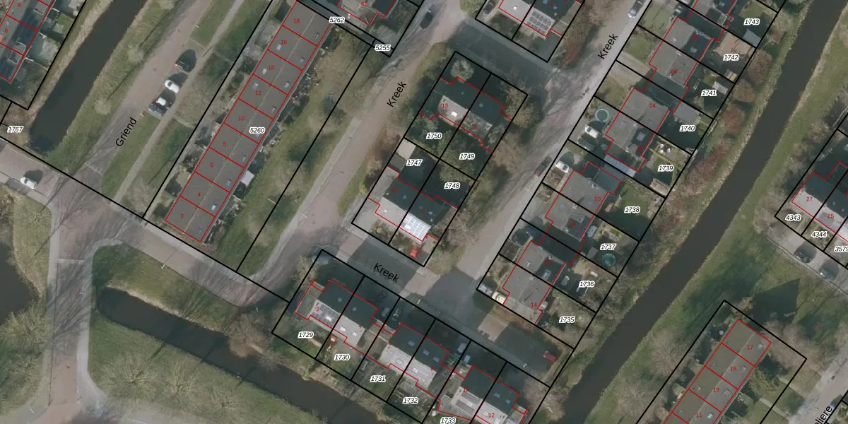 Het perceel waarop Kreek 1 staat heeft een oppervlakte van 236 m². Dit is een middelgroot perceel. De perceeloppervlakte wordt geregistreerd door het Kadaster. Gedetailleerde informatie over de maten van dit perceel kunt u vinden in het rapport Kadastrale kaart met maatvoering van Kreek 1.