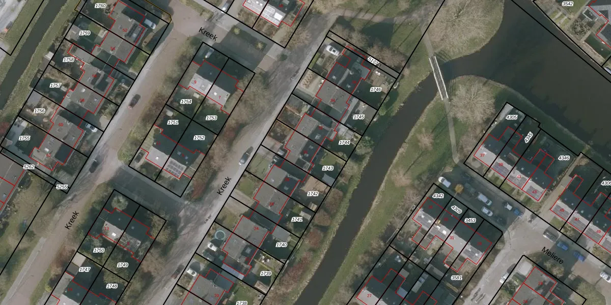 Het perceel waarop Kreek 30 staat heeft een oppervlakte van 265 m². Dit is een middelgroot perceel. De perceeloppervlakte wordt geregistreerd door het Kadaster. Gedetailleerde informatie over de maten van dit perceel kunt u vinden in het rapport Kadastrale kaart met maatvoering van Kreek 30.