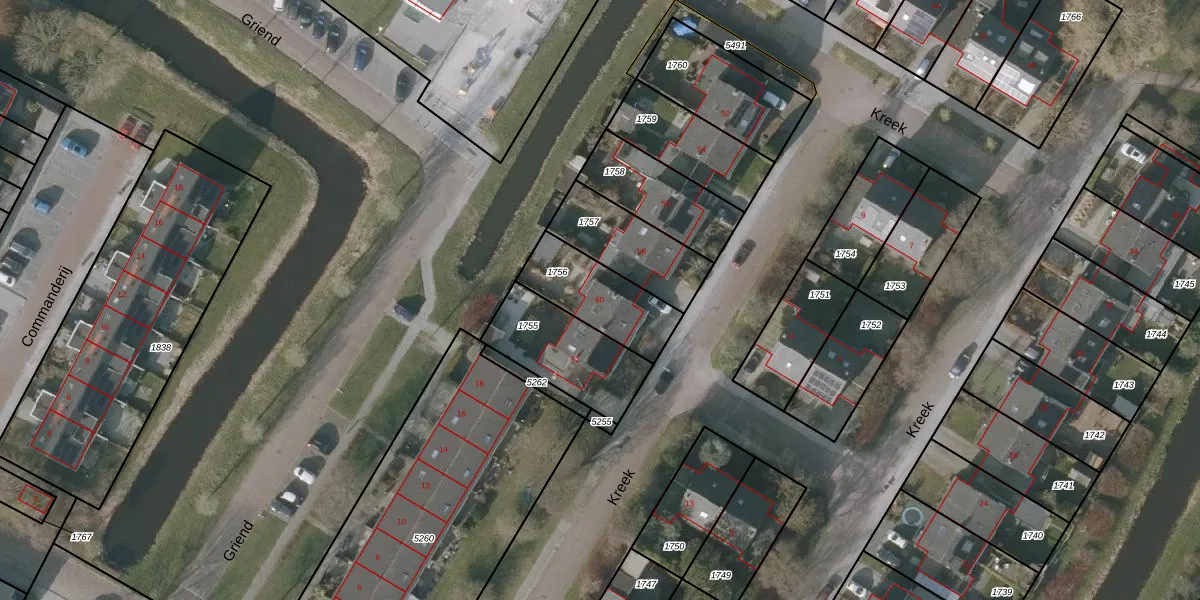 Het perceel waarop Kreek 60 staat heeft een oppervlakte van 265 m². Dit is een middelgroot perceel. De perceeloppervlakte wordt geregistreerd door het Kadaster. Gedetailleerde informatie over de maten van dit perceel kunt u vinden in het rapport Kadastrale kaart met maatvoering van Kreek 60.