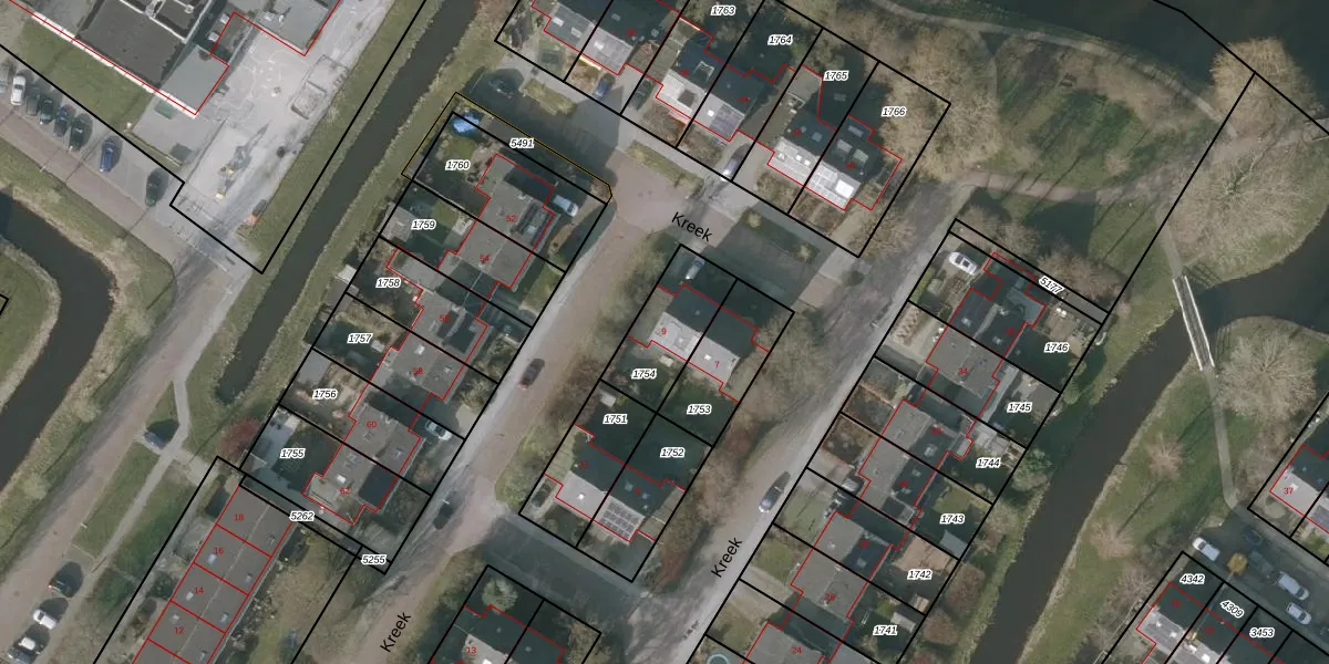 Het perceel waarop Kreek 9 staat heeft een oppervlakte van 236 m². Dit is een middelgroot perceel. De perceeloppervlakte wordt geregistreerd door het Kadaster. Gedetailleerde informatie over de maten van dit perceel kunt u vinden in het rapport Kadastrale kaart met maatvoering van Kreek 9.