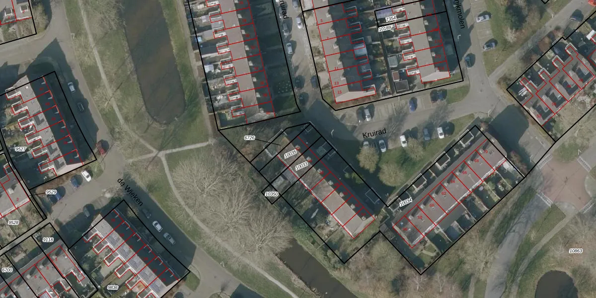 Kruirad 42 is gelegen op kadastraal perceel SNE00C10035. Deze kadastrale aanduiding is uniek en wordt gebruikt door het Kadaster om eigendomsrechten en andere zakelijke rechten vast te leggen. Het perceel maakt onderdeel uit van de kadastrale gemeente Sneek.