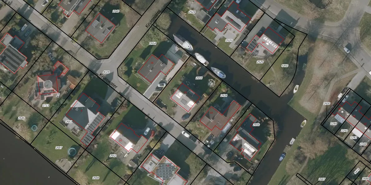 Kruiswater 15 is gelegen op kadastraal perceel SNE00D2655. Deze kadastrale aanduiding is uniek en wordt gebruikt door het Kadaster om eigendomsrechten en andere zakelijke rechten vast te leggen. Het perceel maakt onderdeel uit van de kadastrale gemeente Sneek.