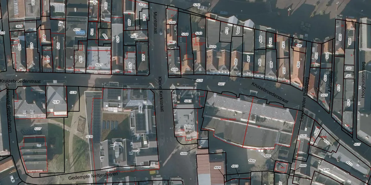 Kruizebroederstraat 32 is gelegen op kadastraal perceel SNE00B5067. Deze kadastrale aanduiding is uniek en wordt gebruikt door het Kadaster om eigendomsrechten en andere zakelijke rechten vast te leggen. Het perceel maakt onderdeel uit van de kadastrale gemeente Sneek.