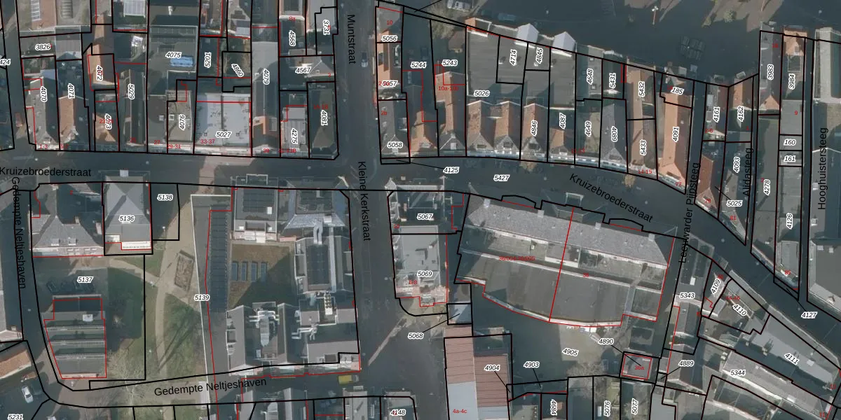 Kruizebroederstraat 32-A is gelegen op kadastraal perceel SNE00B5067. Deze kadastrale aanduiding is uniek en wordt gebruikt door het Kadaster om eigendomsrechten en andere zakelijke rechten vast te leggen. Het perceel maakt onderdeel uit van de kadastrale gemeente Sneek.