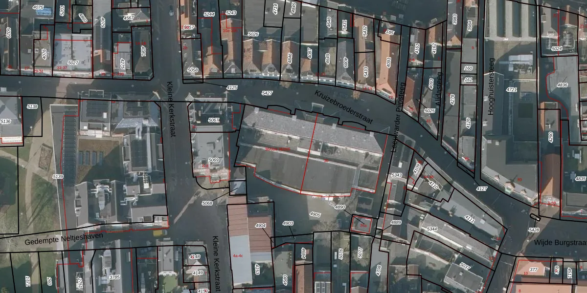Kruizebroederstraat 36-004 is gelegen op kadastraal perceel SNE00B4905. Deze kadastrale aanduiding is uniek en wordt gebruikt door het Kadaster om eigendomsrechten en andere zakelijke rechten vast te leggen. Het perceel maakt onderdeel uit van de kadastrale gemeente Sneek.