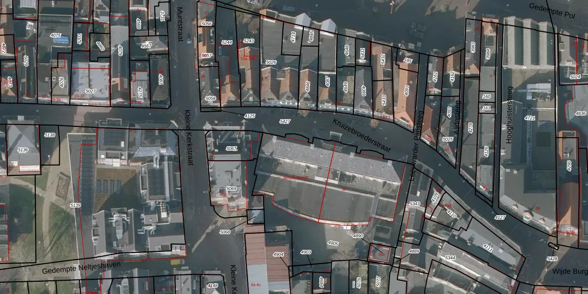 Kruizebroederstraat 36 is gelegen op kadastraal perceel SNE00B4905. Deze kadastrale aanduiding is uniek en wordt gebruikt door het Kadaster om eigendomsrechten en andere zakelijke rechten vast te leggen. Het perceel maakt onderdeel uit van de kadastrale gemeente Sneek.
