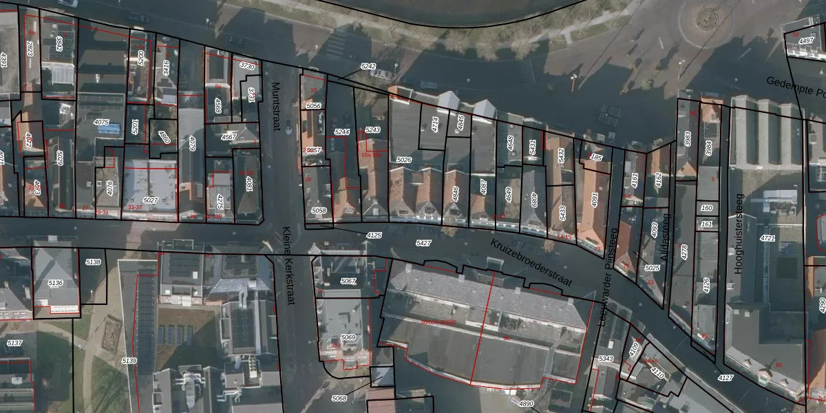 Kruizebroederstraat 55 is gelegen op kadastraal perceel SNE00B5026. Deze kadastrale aanduiding is uniek en wordt gebruikt door het Kadaster om eigendomsrechten en andere zakelijke rechten vast te leggen. Het perceel maakt onderdeel uit van de kadastrale gemeente Sneek.