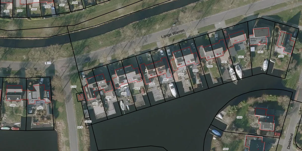 Lange Warren 18 is gelegen op kadastraal perceel SNE00C5956. Deze kadastrale aanduiding is uniek en wordt gebruikt door het Kadaster om eigendomsrechten en andere zakelijke rechten vast te leggen. Het perceel maakt onderdeel uit van de kadastrale gemeente Sneek.