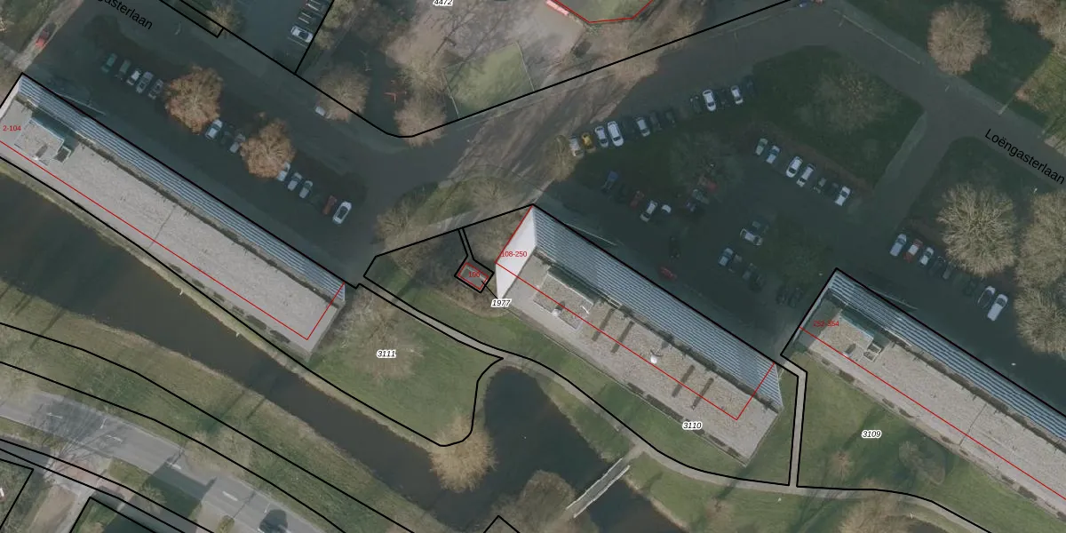 Loëngasterlaan 112 is gelegen op kadastraal perceel SNE00D3110. Deze kadastrale aanduiding is uniek en wordt gebruikt door het Kadaster om eigendomsrechten en andere zakelijke rechten vast te leggen. Het perceel maakt onderdeel uit van de kadastrale gemeente Sneek.