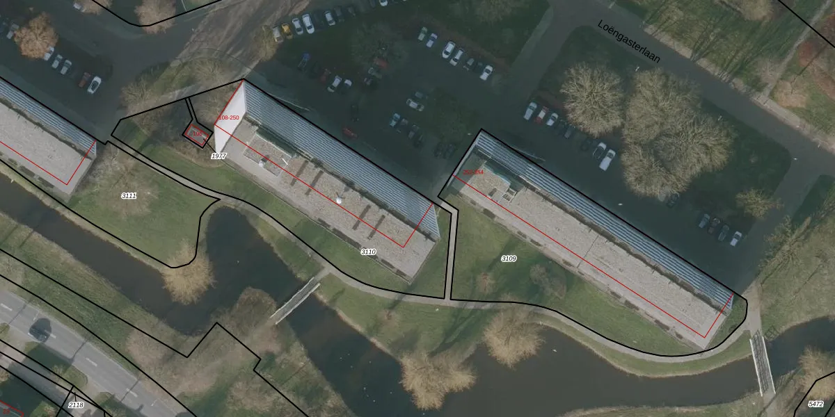 Loëngasterlaan 250 is gelegen op kadastraal perceel SNE00D3110. Deze kadastrale aanduiding is uniek en wordt gebruikt door het Kadaster om eigendomsrechten en andere zakelijke rechten vast te leggen. Het perceel maakt onderdeel uit van de kadastrale gemeente Sneek.