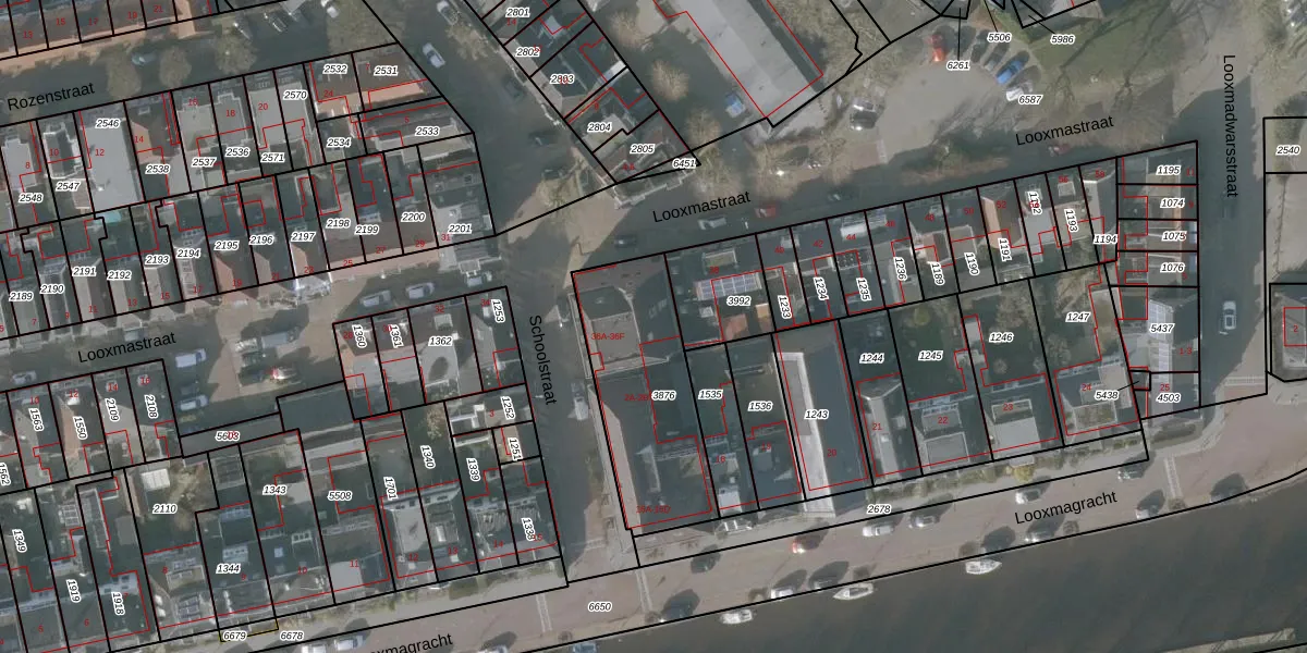 Looxmastraat 36-E is gelegen op kadastraal perceel SNE00A3876. Deze kadastrale aanduiding is uniek en wordt gebruikt door het Kadaster om eigendomsrechten en andere zakelijke rechten vast te leggen. Het perceel maakt onderdeel uit van de kadastrale gemeente Sneek.