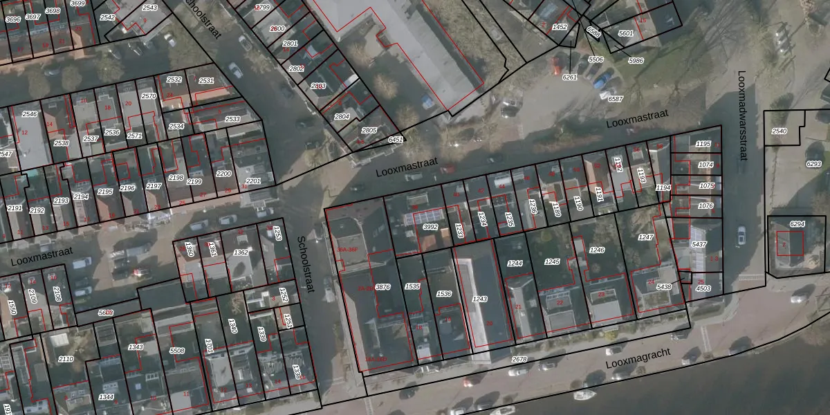 Looxmastraat 38 is gelegen op kadastraal perceel SNE00A3992. Deze kadastrale aanduiding is uniek en wordt gebruikt door het Kadaster om eigendomsrechten en andere zakelijke rechten vast te leggen. Het perceel maakt onderdeel uit van de kadastrale gemeente Sneek.