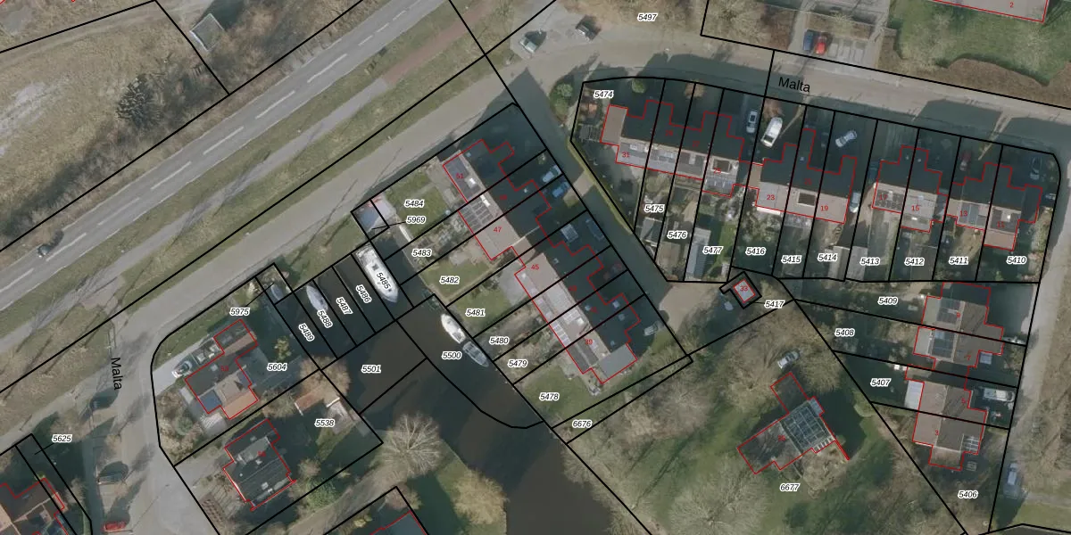 Malta 45 is gelegen op kadastraal perceel SNE00A5481. Deze kadastrale aanduiding is uniek en wordt gebruikt door het Kadaster om eigendomsrechten en andere zakelijke rechten vast te leggen. Het perceel maakt onderdeel uit van de kadastrale gemeente Sneek.