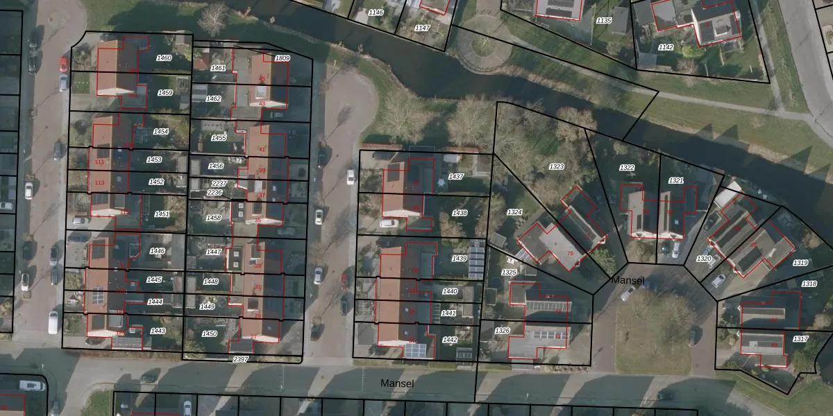 Het perceel waarop Mansel 49 staat heeft een oppervlakte van 318 m². Dit is een groot perceel. De perceeloppervlakte wordt geregistreerd door het Kadaster. Gedetailleerde informatie over de maten van dit perceel kunt u vinden in het rapport Kadastrale kaart met maatvoering van Mansel 49.