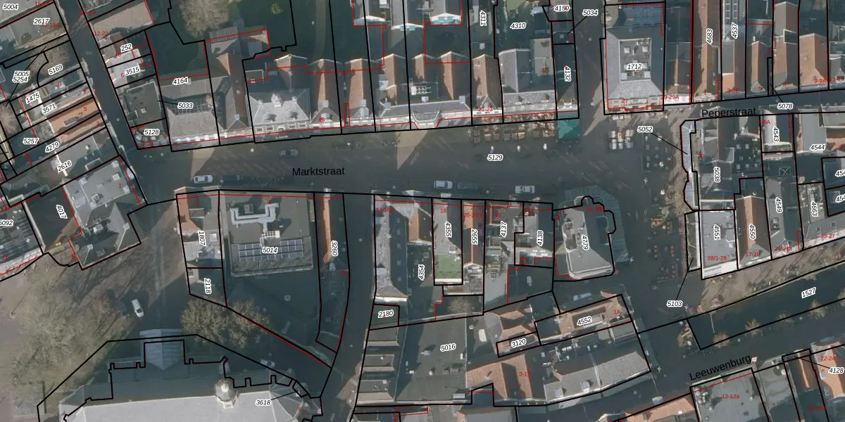 Het perceel waarop Marktstraat 16-a staat heeft een oppervlakte van 459 m². Dit is een groot perceel. De perceeloppervlakte wordt geregistreerd door het Kadaster. Gedetailleerde informatie over de maten van dit perceel kunt u vinden in het rapport Kadastrale kaart met maatvoering van Marktstraat 16-a.