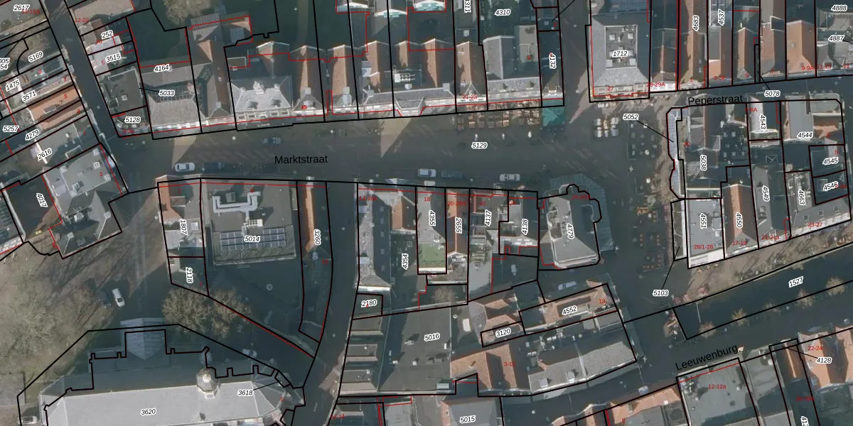 Het perceel waarop Marktstraat 18-A staat heeft een oppervlakte van 136 m². Dit is een middelgroot perceel. De perceeloppervlakte wordt geregistreerd door het Kadaster. Gedetailleerde informatie over de maten van dit perceel kunt u vinden in het rapport Kadastrale kaart met maatvoering van Marktstraat 18-A.