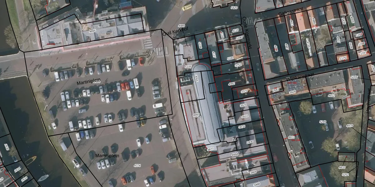 Martiniplein 1 is gelegen op kadastraal perceel SNE00B3055. Deze kadastrale aanduiding is uniek en wordt gebruikt door het Kadaster om eigendomsrechten en andere zakelijke rechten vast te leggen. Het perceel maakt onderdeel uit van de kadastrale gemeente Sneek.