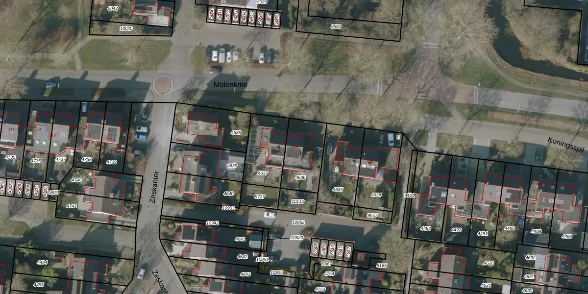Het perceel waarop Molenkrite 124 staat heeft een oppervlakte van 310 m². Dit is een groot perceel. De perceeloppervlakte wordt geregistreerd door het Kadaster. Gedetailleerde informatie over de maten van dit perceel kunt u vinden in het rapport Kadastrale kaart met maatvoering van Molenkrite 124.