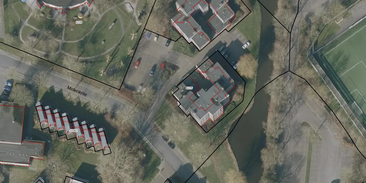 Het perceel waarop Molenkrite 160 staat heeft een oppervlakte van 1010 m². Dit is een zeer groot perceel. De perceeloppervlakte wordt geregistreerd door het Kadaster. Gedetailleerde informatie over de maten van dit perceel kunt u vinden in het rapport Kadastrale kaart met maatvoering van Molenkrite 160.
