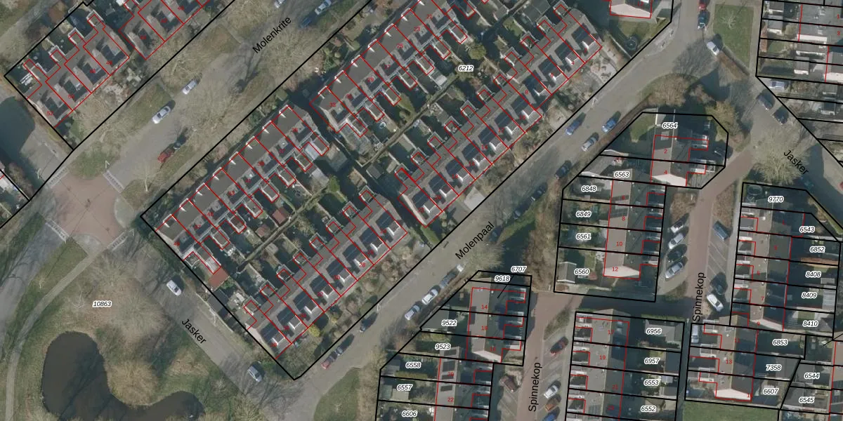 Het perceel waarop Molenpaal 22 staat heeft een oppervlakte van 7130 m². Dit is een zeer groot perceel. De perceeloppervlakte wordt geregistreerd door het Kadaster. Gedetailleerde informatie over de maten van dit perceel kunt u vinden in het rapport Kadastrale kaart met maatvoering van Molenpaal 22.