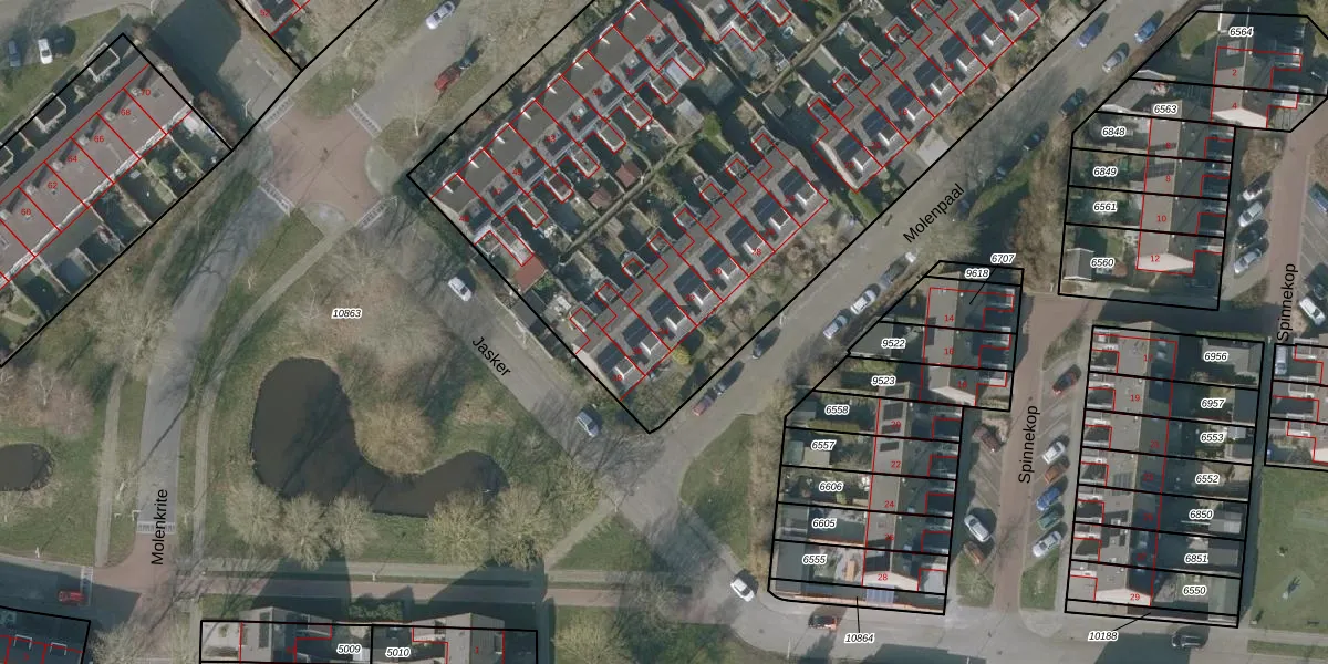 Het perceel waarop Molenpaal 34 staat heeft een oppervlakte van 7130 m². Dit is een zeer groot perceel. De perceeloppervlakte wordt geregistreerd door het Kadaster. Gedetailleerde informatie over de maten van dit perceel kunt u vinden in het rapport Kadastrale kaart met maatvoering van Molenpaal 34.