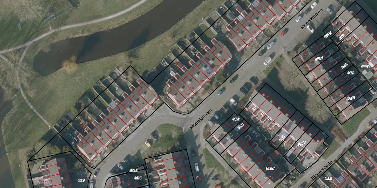 Het perceel waarop Monnikmolen 154 staat heeft een oppervlakte van 5500 m². Dit is een zeer groot perceel. De perceeloppervlakte wordt geregistreerd door het Kadaster. Gedetailleerde informatie over de maten van dit perceel kunt u vinden in het rapport Kadastrale kaart met maatvoering van Monnikmolen 154.