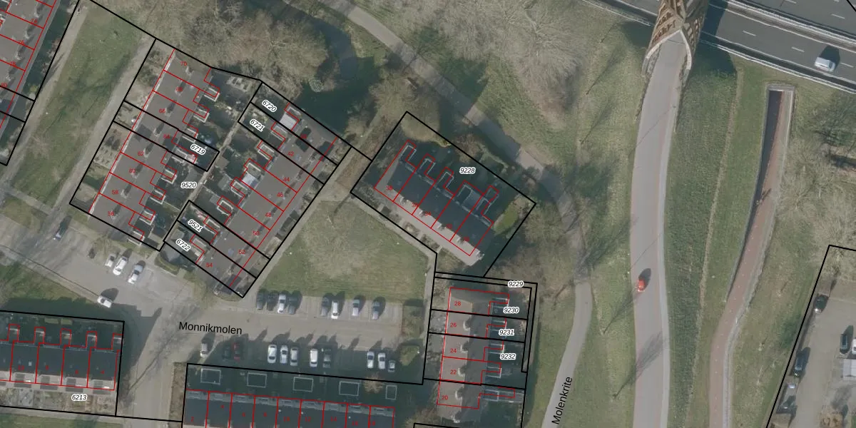 Monnikmolen 34 is gelegen op kadastraal perceel SNE00C9228. Deze kadastrale aanduiding is uniek en wordt gebruikt door het Kadaster om eigendomsrechten en andere zakelijke rechten vast te leggen. Het perceel maakt onderdeel uit van de kadastrale gemeente Sneek.