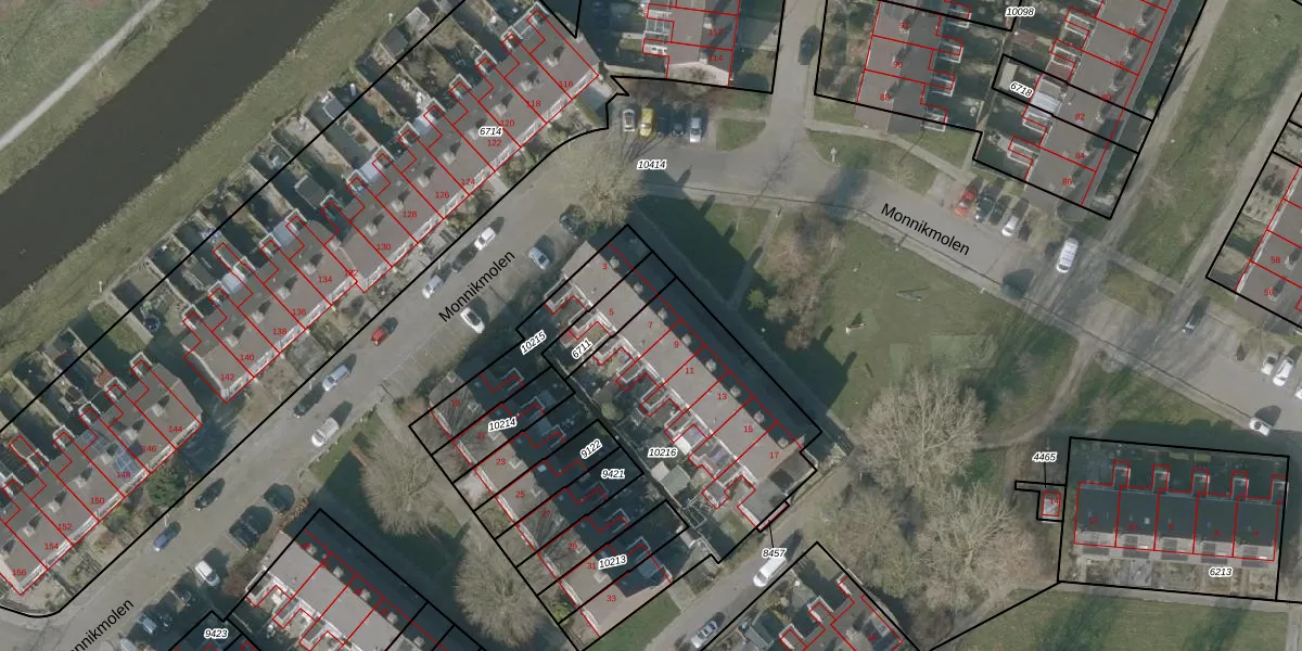 Monnikmolen 7 is gelegen op kadastraal perceel SNE00C10216. Deze kadastrale aanduiding is uniek en wordt gebruikt door het Kadaster om eigendomsrechten en andere zakelijke rechten vast te leggen. Het perceel maakt onderdeel uit van de kadastrale gemeente Sneek.