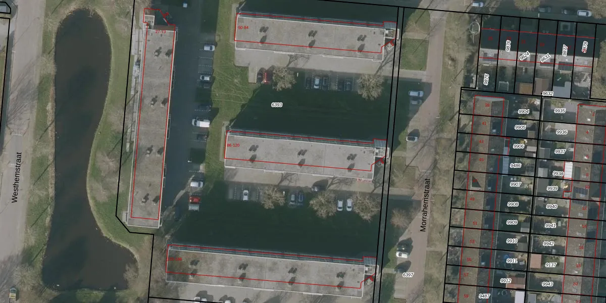 Morrahemstraat 104 is gelegen op kadastraal perceel SNE00C6393. Deze kadastrale aanduiding is uniek en wordt gebruikt door het Kadaster om eigendomsrechten en andere zakelijke rechten vast te leggen. Het perceel maakt onderdeel uit van de kadastrale gemeente Sneek.
