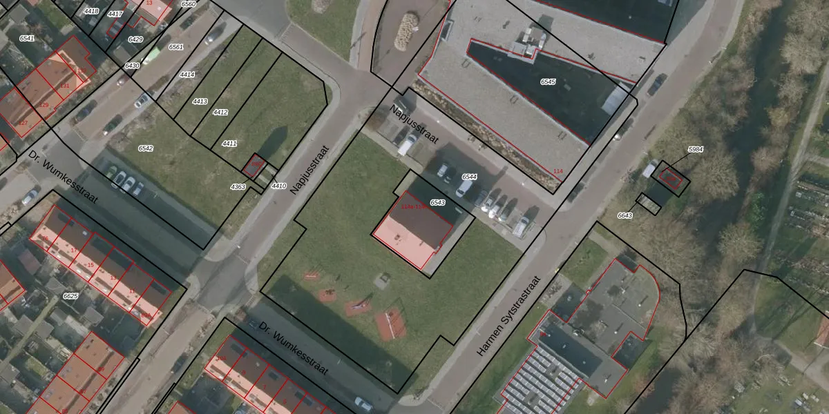 Napjusstraat 114-a is gelegen op kadastraal perceel SNE00A6543. Deze kadastrale aanduiding is uniek en wordt gebruikt door het Kadaster om eigendomsrechten en andere zakelijke rechten vast te leggen. Het perceel maakt onderdeel uit van de kadastrale gemeente Sneek.