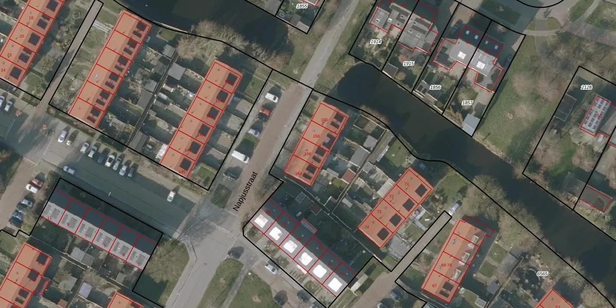 Napjusstraat 156 is gelegen op kadastraal perceel SNE00A6565. Deze kadastrale aanduiding is uniek en wordt gebruikt door het Kadaster om eigendomsrechten en andere zakelijke rechten vast te leggen. Het perceel maakt onderdeel uit van de kadastrale gemeente Sneek.