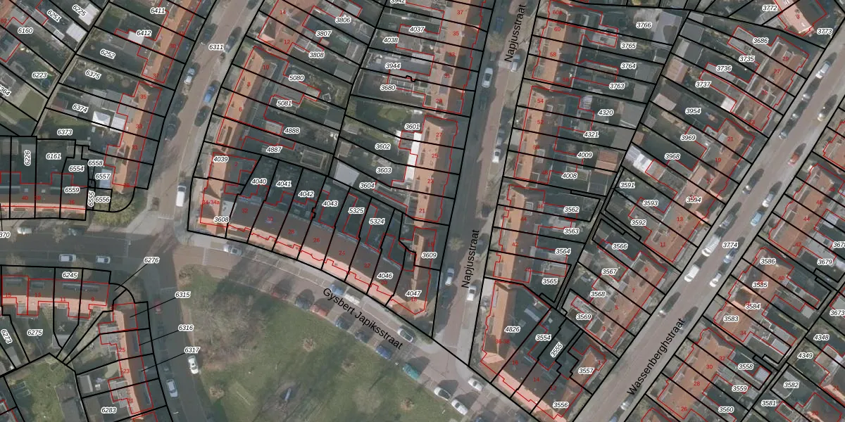 Napjusstraat 21 is gelegen op kadastraal perceel SNE00A3604. Deze kadastrale aanduiding is uniek en wordt gebruikt door het Kadaster om eigendomsrechten en andere zakelijke rechten vast te leggen. Het perceel maakt onderdeel uit van de kadastrale gemeente Sneek.