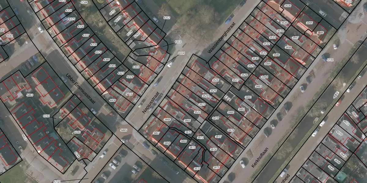 Napjusstraat 30 is gelegen op kadastraal perceel SNE00A3523. Deze kadastrale aanduiding is uniek en wordt gebruikt door het Kadaster om eigendomsrechten en andere zakelijke rechten vast te leggen. Het perceel maakt onderdeel uit van de kadastrale gemeente Sneek.