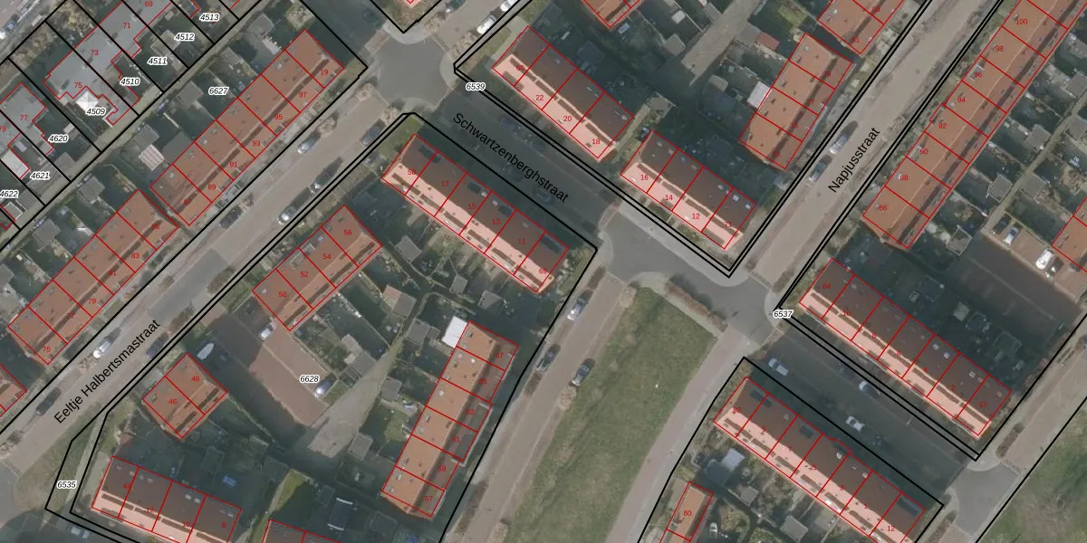 Het perceel waarop Napjusstraat 69 staat heeft een oppervlakte van 4945 m². Dit is een zeer groot perceel. De perceeloppervlakte wordt geregistreerd door het Kadaster. Gedetailleerde informatie over de maten van dit perceel kunt u vinden in het rapport Kadastrale kaart met maatvoering van Napjusstraat 69.