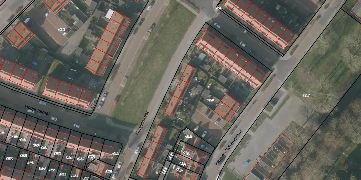 Napjusstraat 78 is gelegen op kadastraal perceel SNE00A6323. Deze kadastrale aanduiding is uniek en wordt gebruikt door het Kadaster om eigendomsrechten en andere zakelijke rechten vast te leggen. Het perceel maakt onderdeel uit van de kadastrale gemeente Sneek.