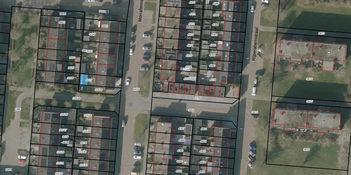 Het adres is gelegen op perceel 4378 in de sectie C en de kadastrale gemeente Sneek. De kadastrale aanduiding is aldus SNE00-C-4378. De gemiddelde perceelgrootte in Sneek is 2093,88 m². Dit perceel is kleiner: de perceeloppervlakte bedraagt 357 m². Het grootste perceel in de kadastrale gemeente is 61,3 ha. Het kleinste perceel heeft een oppervlakte van 0 m². Op het perceel liggen in totaal 9 adressen. In de Basisregistratie Kadaster (BRK) werden de grenzen van het perceel geregistreerd op 15-01-1998.