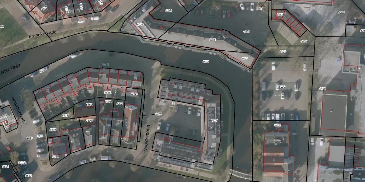 Noorderpoort 21 is gelegen op kadastraal perceel SNE00A5677. Deze kadastrale aanduiding is uniek en wordt gebruikt door het Kadaster om eigendomsrechten en andere zakelijke rechten vast te leggen. Het perceel maakt onderdeel uit van de kadastrale gemeente Sneek.