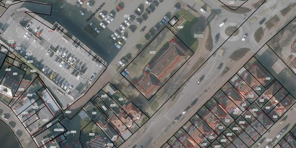Het perceel waarop Normandiaplein 8 staat heeft een oppervlakte van 1174 m². Dit is een zeer groot perceel. De perceeloppervlakte wordt geregistreerd door het Kadaster. Gedetailleerde informatie over de maten van dit perceel kunt u vinden in het rapport Kadastrale kaart met maatvoering van Normandiaplein 8.
