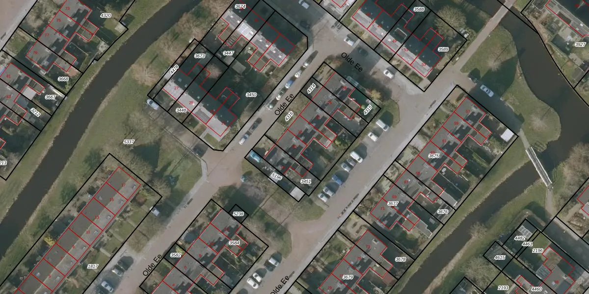 Het perceel waarop Olde Ee 20 staat heeft een oppervlakte van 477 m². Dit is een groot perceel. De perceeloppervlakte wordt geregistreerd door het Kadaster. Gedetailleerde informatie over de maten van dit perceel kunt u vinden in het rapport Kadastrale kaart met maatvoering van Olde Ee 20.