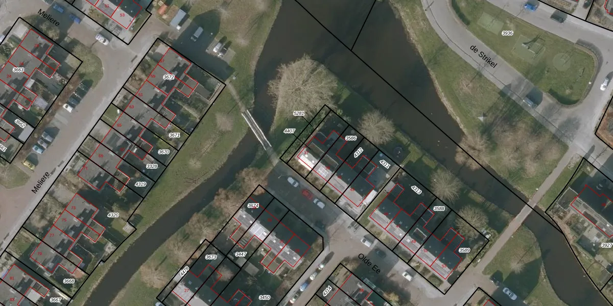 Het perceel waarop Olde Ee 37 staat heeft een oppervlakte van 175 m². Dit is een middelgroot perceel. De perceeloppervlakte wordt geregistreerd door het Kadaster. Gedetailleerde informatie over de maten van dit perceel kunt u vinden in het rapport Kadastrale kaart met maatvoering van Olde Ee 37.