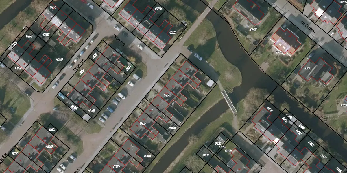 Olde Ee 61 is gelegen op kadastraal perceel SNE00D3675. Deze kadastrale aanduiding is uniek en wordt gebruikt door het Kadaster om eigendomsrechten en andere zakelijke rechten vast te leggen. Het perceel maakt onderdeel uit van de kadastrale gemeente Sneek.