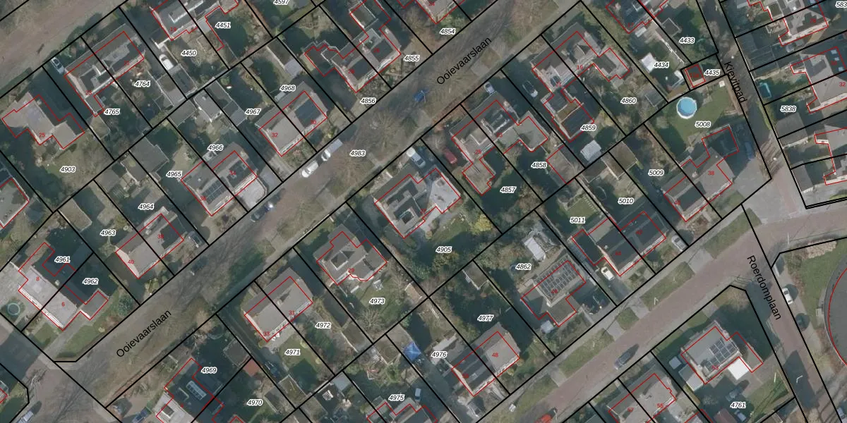 Het perceel waarop Ooievaarslaan 27 staat heeft een oppervlakte van 695 m². Dit is een groot perceel. De perceeloppervlakte wordt geregistreerd door het Kadaster. Gedetailleerde informatie over de maten van dit perceel kunt u vinden in het rapport Kadastrale kaart met maatvoering van Ooievaarslaan 27.