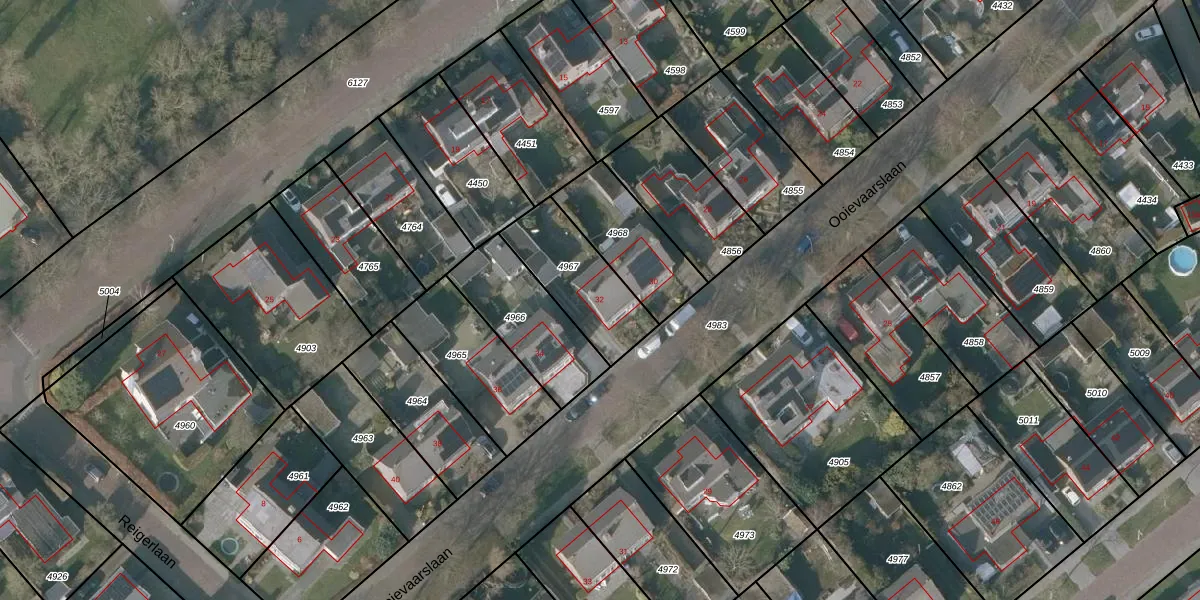 Het perceel waarop Ooievaarslaan 32 staat heeft een oppervlakte van 311 m². Dit is een groot perceel. De perceeloppervlakte wordt geregistreerd door het Kadaster. Gedetailleerde informatie over de maten van dit perceel kunt u vinden in het rapport Kadastrale kaart met maatvoering van Ooievaarslaan 32.