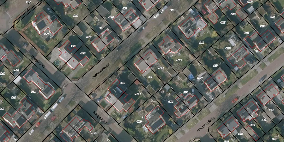 Het perceel waarop Ooievaarslaan 33 staat heeft een oppervlakte van 355 m². Dit is een groot perceel. De perceeloppervlakte wordt geregistreerd door het Kadaster. Gedetailleerde informatie over de maten van dit perceel kunt u vinden in het rapport Kadastrale kaart met maatvoering van Ooievaarslaan 33.