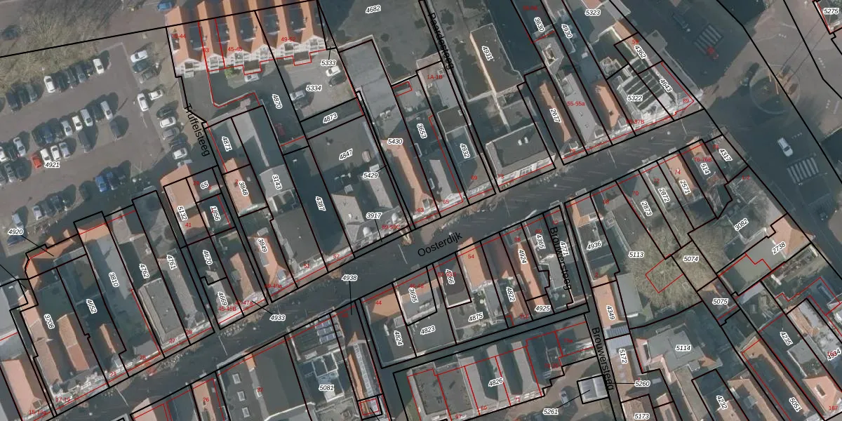 Het perceel waarop Oosterdijk 63 staat heeft een oppervlakte van 338 m². Dit is een groot perceel. De perceeloppervlakte wordt geregistreerd door het Kadaster. Gedetailleerde informatie over de maten van dit perceel kunt u vinden in het rapport Kadastrale kaart met maatvoering van Oosterdijk 63.